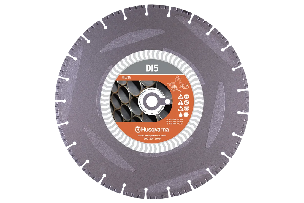 D15 blade has a long life when cutting ductile iron and can last as long as up to 75 abrasive blades and cuts faster than abrasive blades. Incorporates electroplating on the core to aid cutting. This results in fewer blade changes.