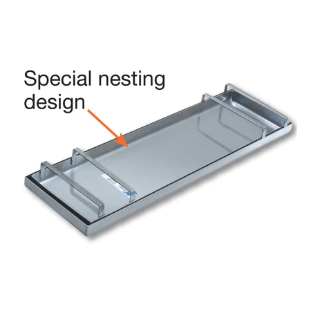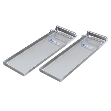 Lightweight knee boards are made of top quality #16 gauge stainless steel. The 28" x 8-1/2" flat sliders feature rounded edges and corners to prevent digging into the concrete while finishing. The unique special nesting design minimizes the tool's footprint for compact storage. Polished stainless steel reduces the risk of corrosive problems on these heavy duty kneeboards. Reinforced, durable sliders are easy to use to protect your concrete while finishing. Toe bracket secures the foot and allows for an ease of back and forth movement along the work surface.