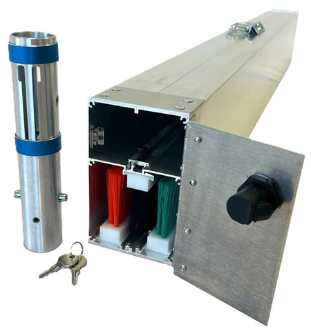 This product comes with a protective and convenient aluminum carry case. Our adjustable push-pull angled design uses the sides of the bristle, not the ends, to produce a superior brush finish. Bristles are made with mendable nylon resin. Other features include our high-density polyethylene block, and our aluminum extruded channel, which not only makes this brush durable but allows you to swap out the bristles with any of our other five texturing options. This kit comes with three brush refills (black/soft, orange/medium, and green/stiff) as well as our Multi-Use Adapter.