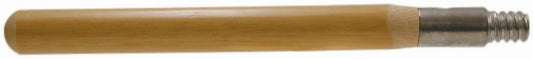 Selected hardwood with clear lacquered finish. One end rounded and other end equipped with crimped-on metal thread to fit standard floor brush blocks.