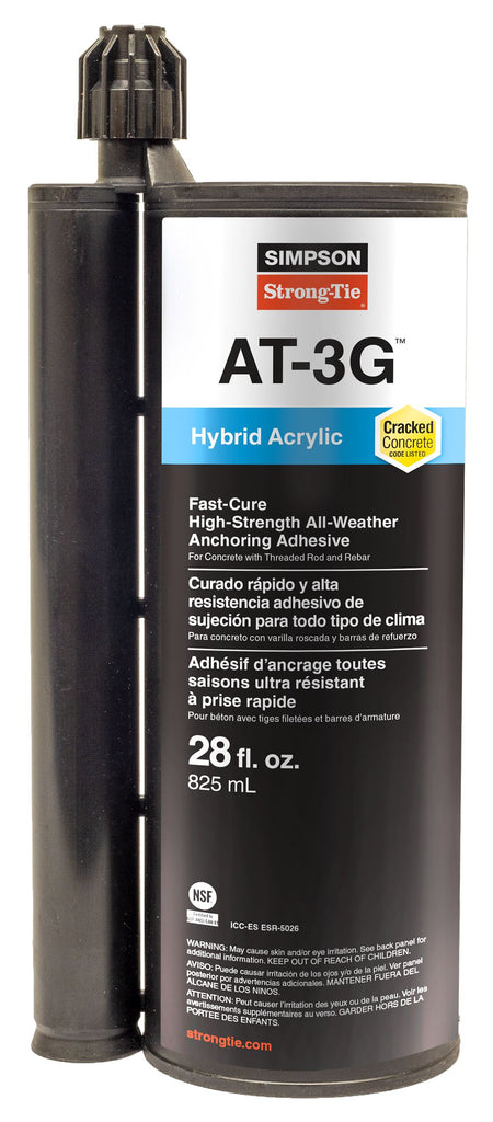 AT-3G is a hybrid, acrylic-based adhesive for anchoring threaded rod and rebar into cracked and uncracked concrete. Ideal for cold weather and wet concrete applications, AT-3G dispenses easily and offers a fast curing time for same-day bolt up. It can be specified for a wide range of in-service temperatures, and maintains its strong bond strength in extreme environments for ultimate design and jobsite flexibility. Tested and code compliant with the IBC and IRC, AT-3G hybrid adhesive is easy to install with the conventional blow-brush-blow hole cleaning method.