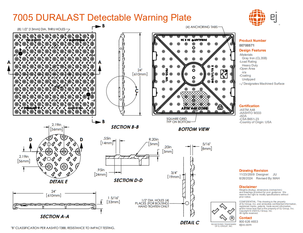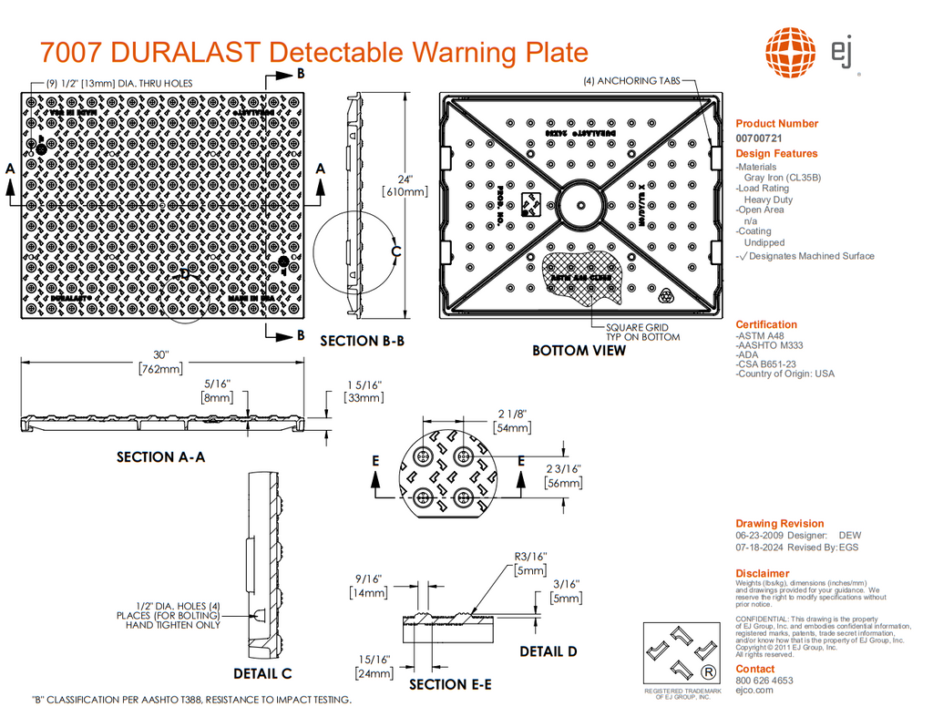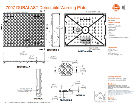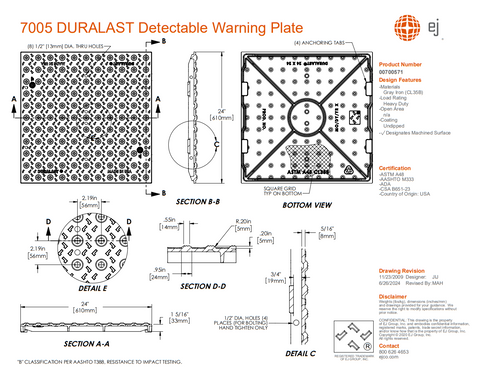 DURALAST® Detectable Warning Plates help warn the blind or visually impaired of the approaching street. This long-lasting cast iron product is easy to install and maintenance free.