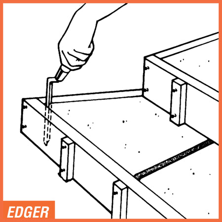 Cut the perfect control joints on steps every time with this unique tool. This patented tool (U.S. Patent #D-333,600) is easy to use and saves time while increasing the quality of your work. Forms both horizontal and vertical control joints into the face of slabs, curbs, and steps. A strong ductile iron blade holds up to the rigors of concrete work. The 6" long blade creates a 1/2" wide and 1" deep groove. Work the groover on top of the step as with most applications. Then simply work the groover between the form and the concrete at the front of steps for a perfect joint every time. A must-have tool for every concrete finisher. Ideal for parking curbs, step faces, step corners, control joints, curbs, gutters, stadium risers, and when exposed aggregate is needed. A 6" smooth wood handle completes the tool.