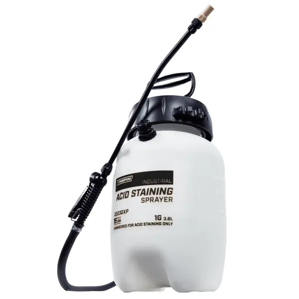 The Chapin 22230XP industrial acid staining sprayer is specifically designed and equipped to handle acids for acid staining and cleaning associated with industrial applications.