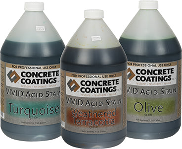 Concrete Coatings, Inc. VIVID™ Acid Stain assists in the creation of an aged, mottled and antiqued color that is one of a kind. Countless distinctive looks can be attained adding beauty to concrete surfaces as well as Spray-Tek™ Acrylic Overlays, Micro-Topping and Stamp-Tek™ Stampable Overlays. VIVID™ Acid Stain is available in 11 standard colors and can be used on interior and exterior applications.