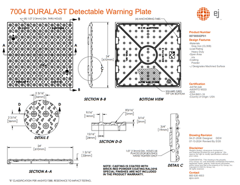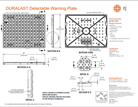 DURALAST® Detectable Warning Plates help warn the blind or visually impaired of the approaching street. This long-lasting cast iron product is easy to install and maintenance free.