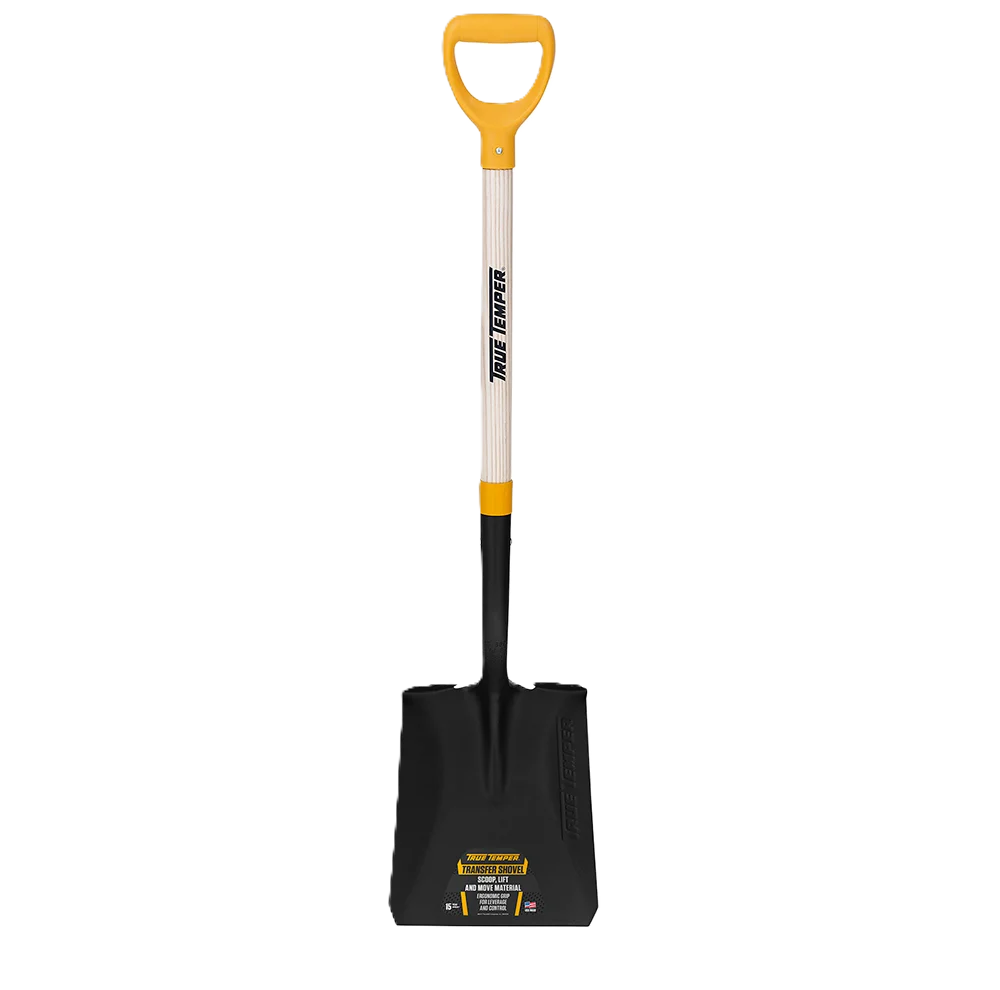 The True Temper d-handle transfer shovel has so many uses that it's an essential part of any tool assortment. It's perfect for moving loose garden material, sand, topsoil or debris. It can also be used to shape beds, mix concrete, level off areas that need to be flat or to scrape stubborn material off driveways or other hard surfaces.