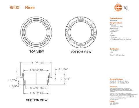 This cast iron riser can be used on a resurfacing project to bring any 8550, 8555, or 8560 series valve box lid to finished grade.