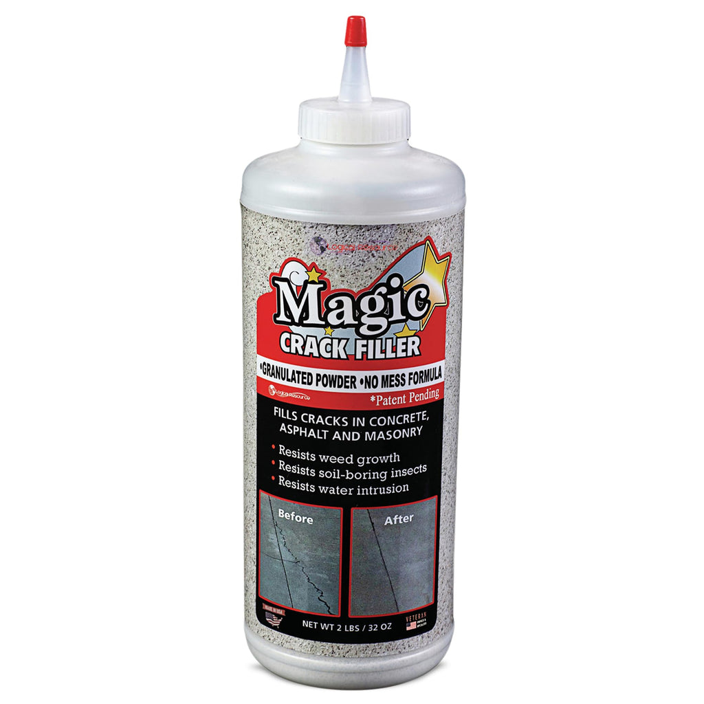 Magic Crack Filler is a simple, non-flammable product for filling any horizontal crack in concrete, stonework, masonry and asphalt including, clay products and natural stone. It can repair cracks ranging from hairline to 2 inches wide thus making it ideal for pool decks, driveways, walkways, commercial entries, patios and vehicular drive areas (to name just a few). Other crack fillers are messy and require cumbersome techniques. This product’s dry granulated powder fills crack fissures from top to bottom. As it dries it becomes the consistency of hard rubber. Cracks virtually disappear (like Magic!) and the surrounding areas remain unaffected.