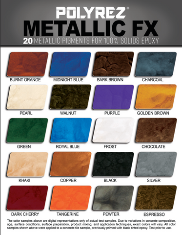 Metallic FX is a unique metallic powder pigment system for both 100% solids 250 HP Cyclo Epoxy & Maxx Flow Epoxy. Metallic FX is suited for both floor & countertop applications.