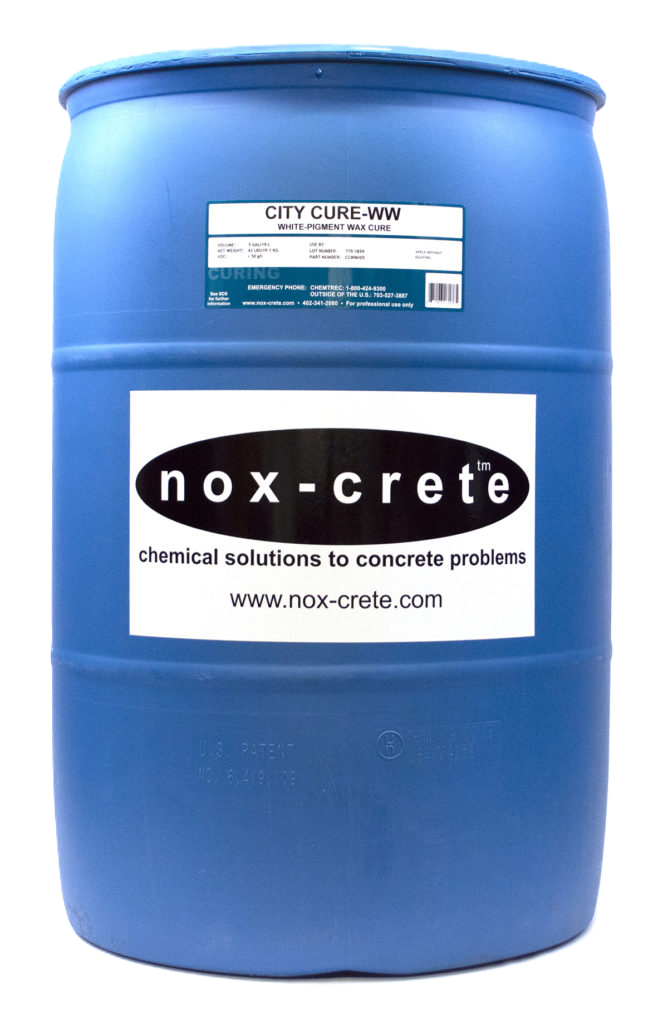 City Cure - WW is a white pigmented wax concrete curing compound. Apply City Cure - WW to fresh concrete and it rapidly forms a moisture vapor-resistant membrane that maximizes water retention. The retained water improves cement hydration and increases concrete strength. Furthermore, a white pigment added to the formulation reflects the sun’s rays to keep the concrete surface cooler.