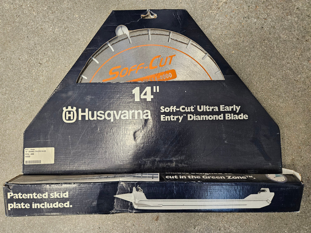The Husqvarna Excel 4000 Series Orange features unique triangular arbor configuration and cuts medium aggregate, medium abrasive sand.